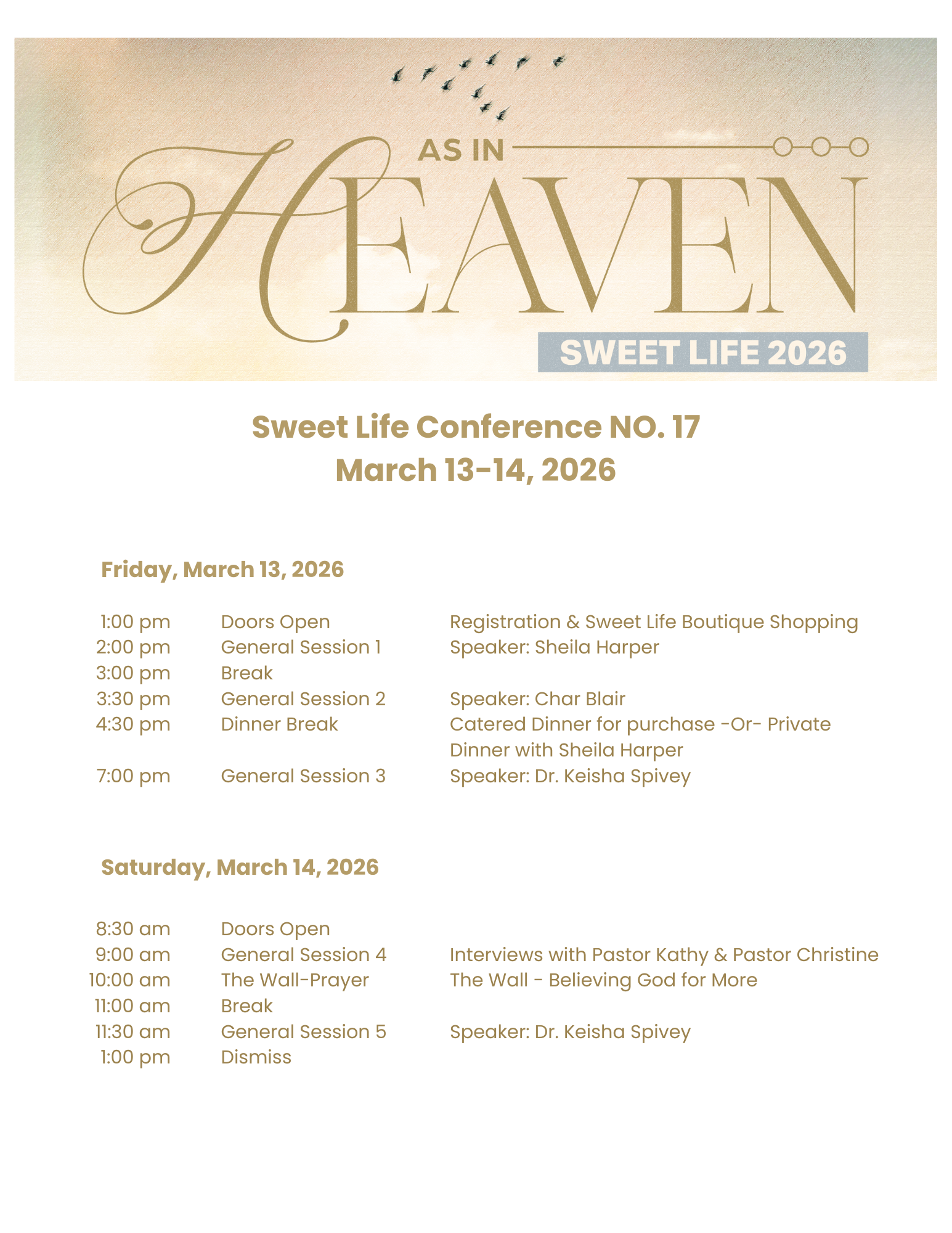 Sweet Life 2026 Schedule